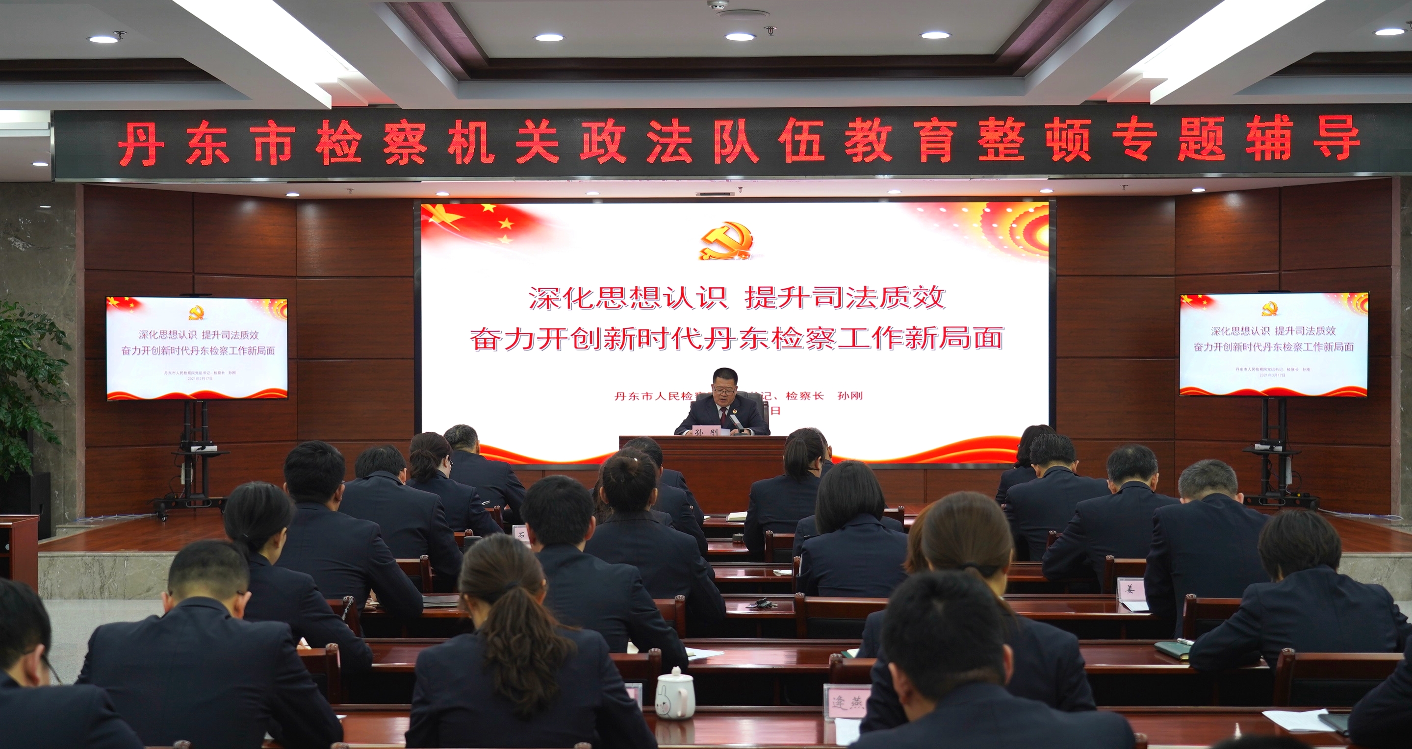 3月17日,按照丹东市检察机关检察队伍教育整顿工作安排部署,丹东市人民检察院党组书记、检察长孙刚以《深化思想认识,提升司法质效,奋力开创新时代丹东检察工作新局面》为题,为市检察院全体检察干警讲授党课。