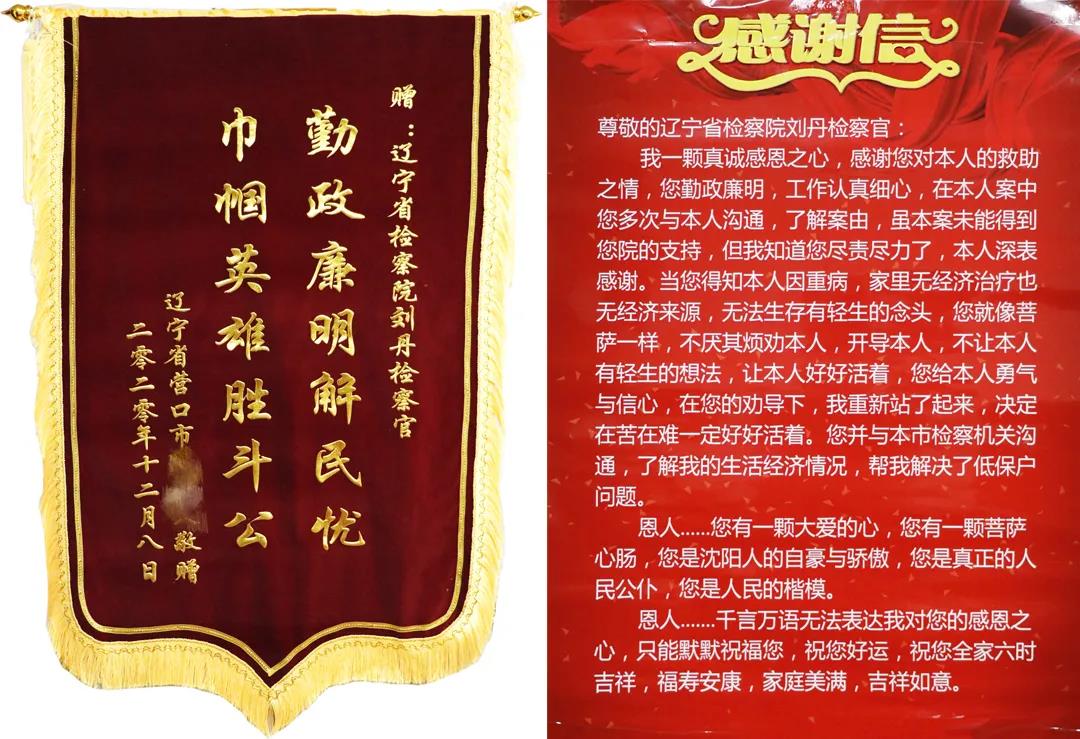 “刘检察官,我不在乎申诉结果了。但你必须收下这些东西,才能了却我一桩心愿,不然不知道自己哪天就死了,不能当面感谢你,我会死不瞑目的……” 2020年12月11日,家住辽宁省营口市西市区的申诉人王某拖着病弱的身体,在家人的陪同下坐车近200公里,带着用棉被包裹的鲜花、感谢信和锦旗出现在辽宁王中王论坛 第一检察部员额检察官刘丹的面前,突然要跪下……