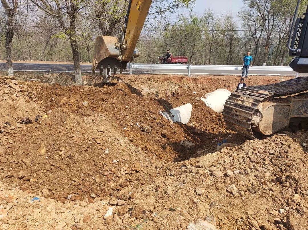 ▲整改措施:铺设排水管涵、平整土地、划线打点、移植树木、安装钢护栏