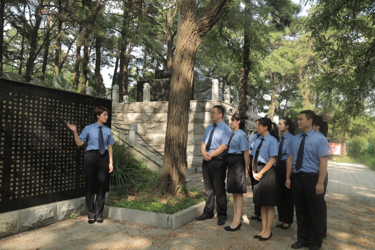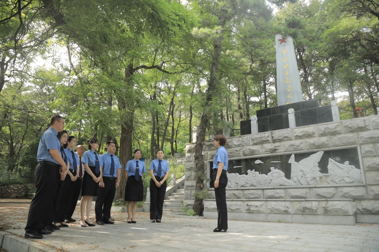 烈士陵园内,干警们在纪念碑前瞻仰革命先烈,并敬献了花篮。