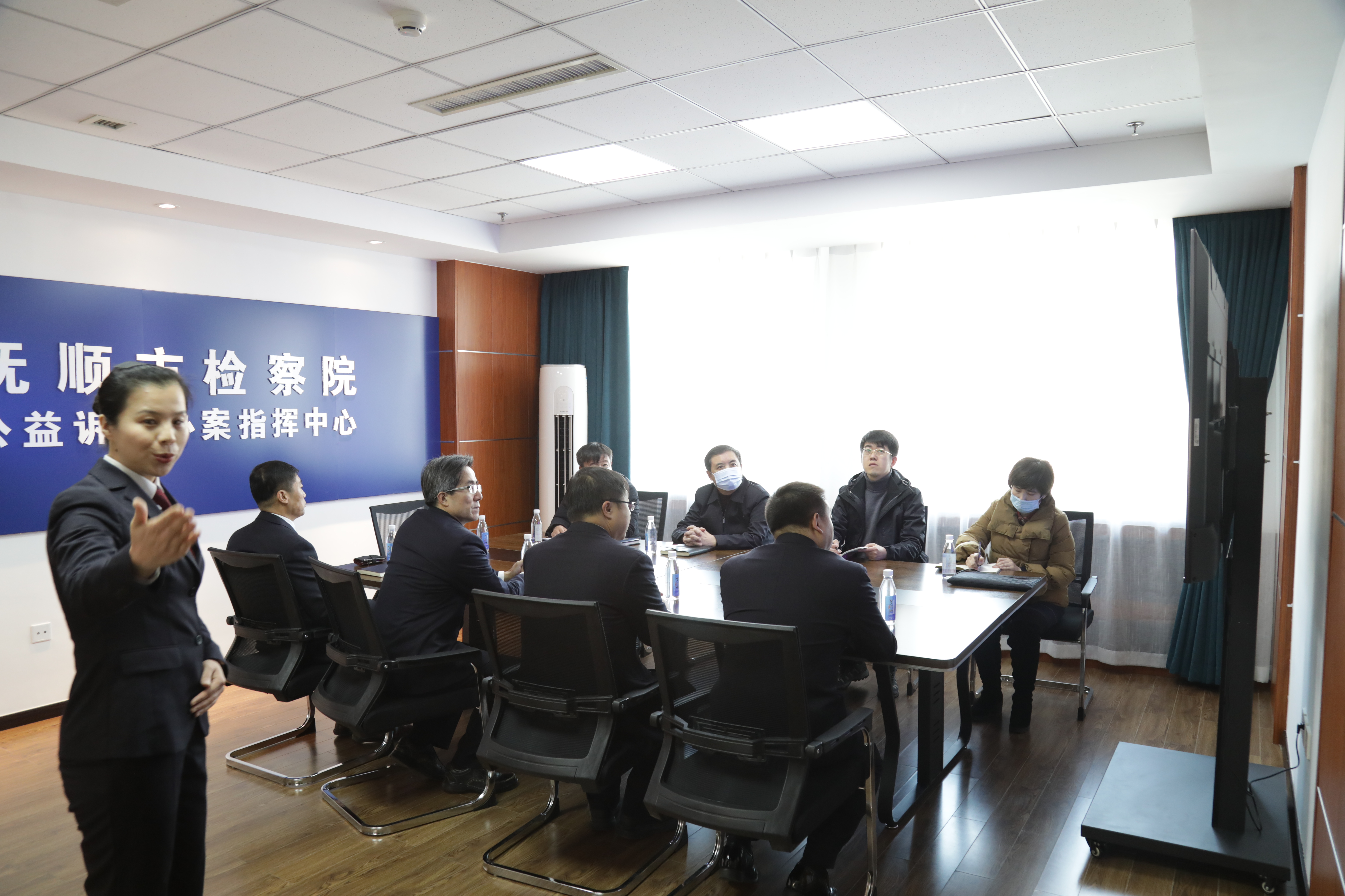 抚顺市人大调研组首先参观了刚刚启用的抚顺市检察院公益诉讼指挥中心,现场观看了指挥中心信息平台功能演示、远程视证系统、典型案例视频等公益诉讼信息化建设成果。
