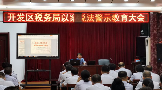 近日,应盘锦市经济开发区税务局邀请,盘锦市兴隆台区检察院刑事检察的检察官为税务局干部上了一堂预防职务犯罪警示教育课。