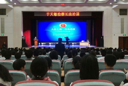 课前,辽宁省实验中学校长关俊奇向于天敏检察长颁发了法治副校长聘书。课堂上,于天敏以“人生之旅法治相伴”为主题,从法治的功能与作用、中国特色社会主义法治道路40年发展历程、检察机关作为国家法律监督机关的职责、未成年人如何尊法学法守法用法等四个方面进行讲解。引导同学们树立法治思维和法治理念,尊崇法律、遵守法律、宣传法律、依靠法律,带头做社会主义法治的忠实崇尚者、自觉遵守着、坚定捍卫者。