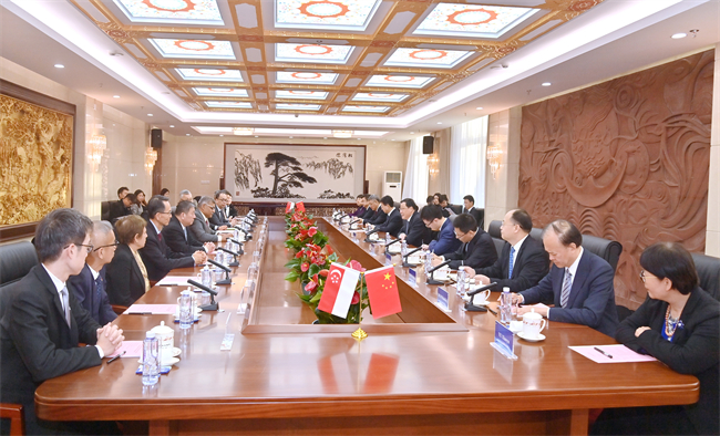 国家一级大检察官、最高检常务副检察长童建明,新加坡最高法院大法官莊泓翔、施奇恩、艾迪·阿都拉,新加坡驻华大使陈海泉等参加会见。