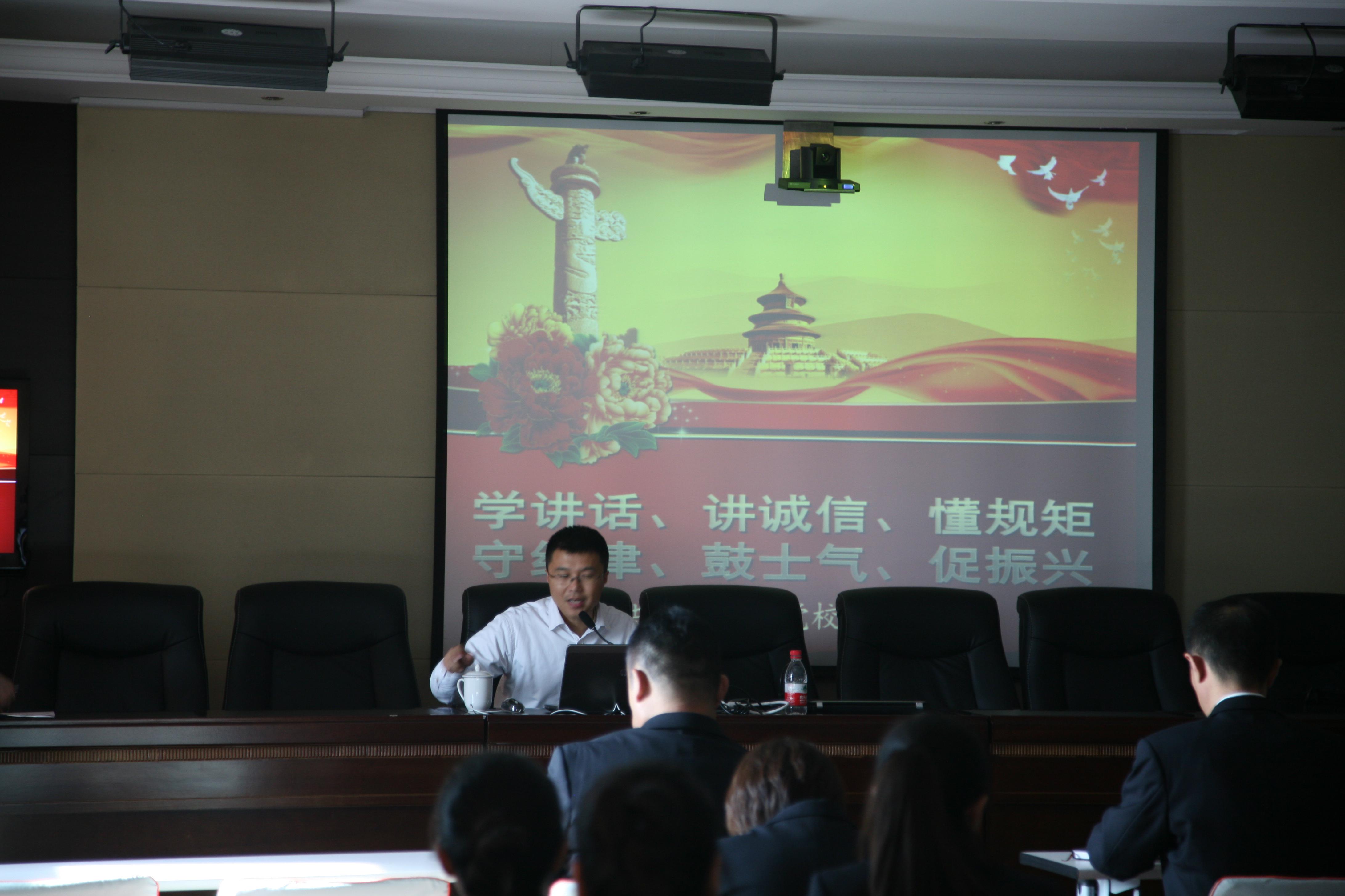 本溪市明山区检察院于2015年10月22日召开全院大会,组织全院干警一起上党课,共同学习习近平总书记关于东北振兴的重要讲话和批示精神,以此加强本院“道德讲堂”建设工作。