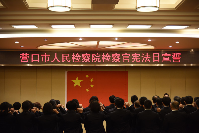 为强化检察人员崇尚宪法法律的信念,12月4日国家宪法日,营口市检察院举行了检察官宪法日宣誓。市检察院党组副书记、副检察长栾奕,反贪局局长栾学思,政治部主任吴晓光及40余名检察官参加了宪法宣誓。宣誓由反贪局局长栾学思领誓。