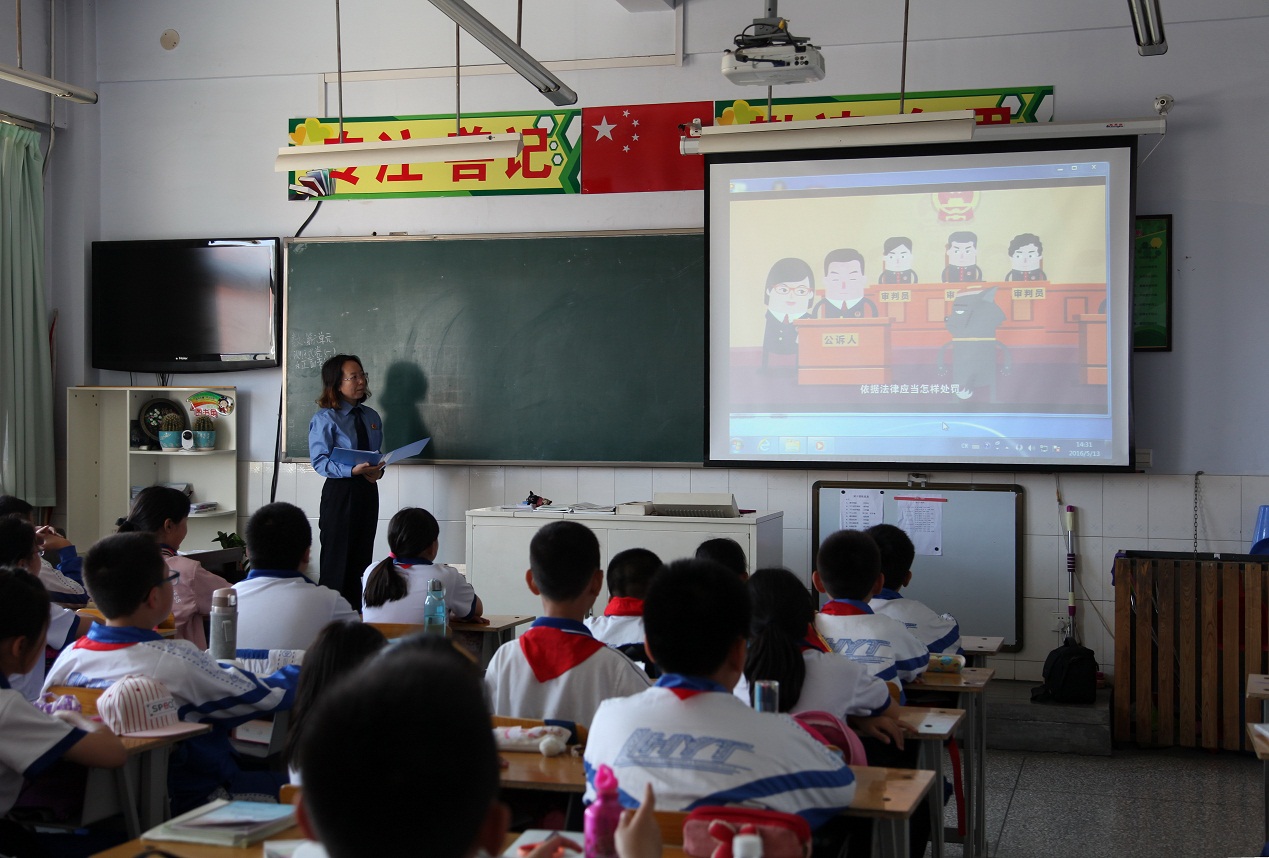 六一节前夕,盘锦市检察院宣传处副处长卢晓春应辽河油田胜利小学四年八班班主任老师的邀请,代表市检察机关“进学校”法律宣讲团来为同学们上法制课。