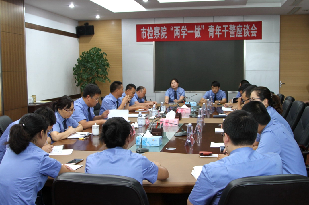 日前,盖州市检察院召开“两学一做”青年干警座谈会。该院党组书记、检察长马晓艺,党组副书记张心灵、政治处主任张春嵘到会与青年干警面对面进行了座谈交流,会议由机关党委副书记李会林主持。