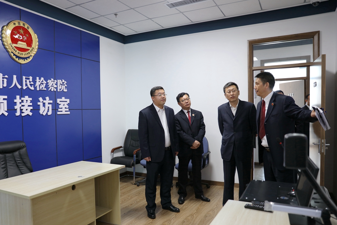 3月30日上午,营口市委常委、政法委书记姜庆明一行到营口市人民检察院调研指导工作。调研期间,姜庆明书记参观了市检察院的案管大厅、控申大厅、院史荣誉室,并与市院领导班子成员以及各部门负责人进行了座谈。