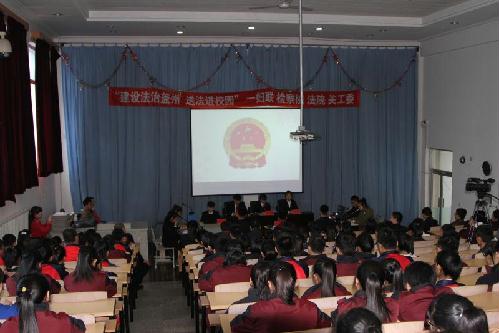 3月30日,盖州市检察院未检科联合法院、市机关工委、市妇联在盖州市第一高级中学举办少年“模拟法庭”进校园活动,百余名学生旁听了这次“庭审”。