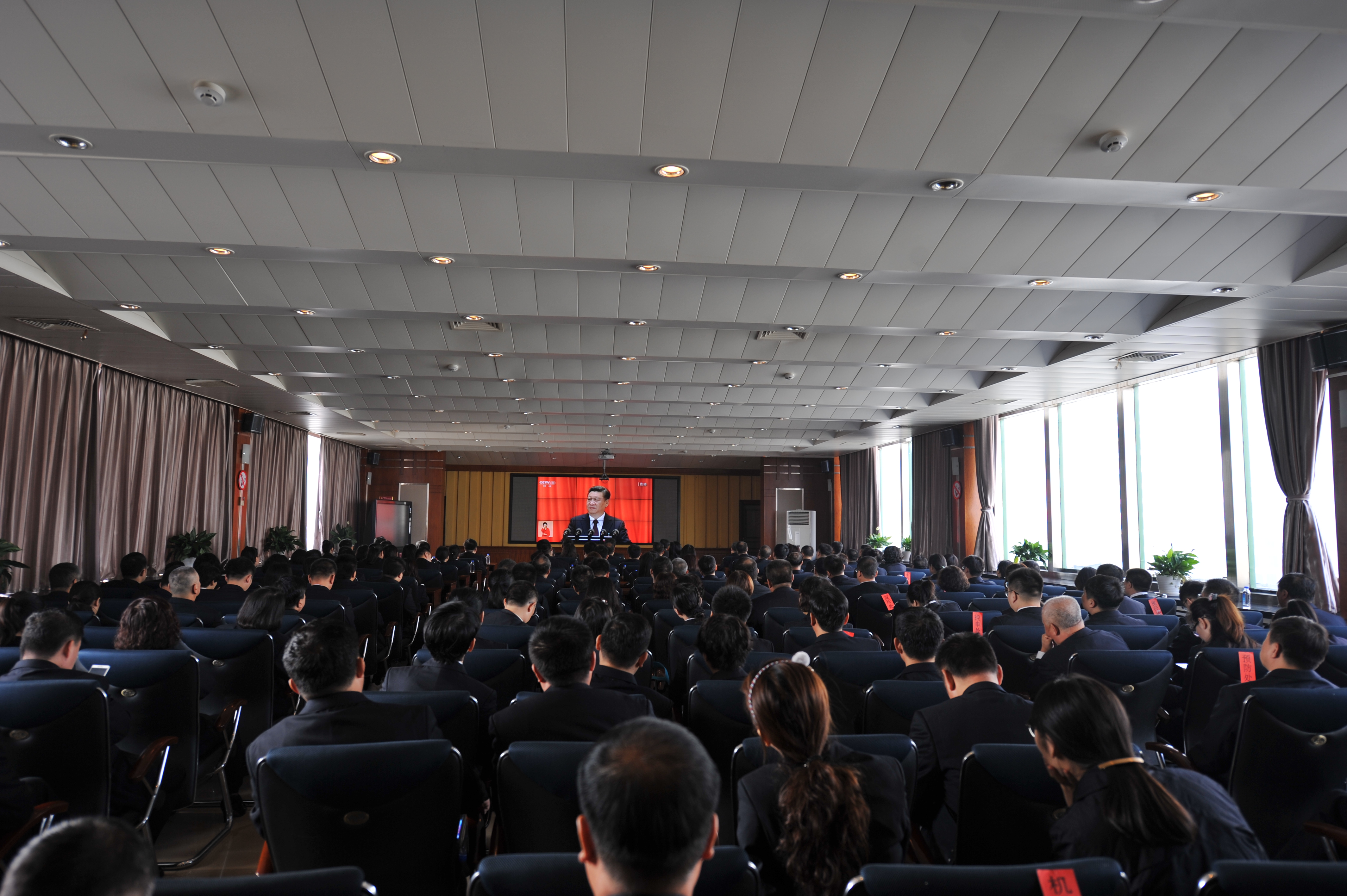 10月18日,举世瞩目的中国共产党第十九次全国代表大会在北京人民大会堂隆重开幕。习总书记代表第十八届中央委员会向大会作了题为《决胜全面建成小康社会 夺取新时代中国特色社会主义伟大胜利》的报告。鞍山市人民检察院设置中心会场一个、各县(市)区院共设置分会场七个,组织鞍山检察机关全体党员干部收听收看了大会实况转播。八个会场座无虚席,统一着检察服,佩戴检徽,提前坐好,激情满怀等待盛会召开。鞍山市人民检察院检察长王军参加集中观看。会后,检察干警纷纷表示要紧密团结在以习近平同志为核心的党中央周围,不忘初心,牢记使命,高举中国特色社会主义伟大旗帜,锐意进取,埋头苦干,忠诚履行法律监督职责,为决胜全面建成小康社会,夺取新时代中国特色社会主义伟大胜利,实现中华民族伟大复兴的中国梦贡献检察力量。