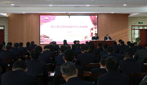 侯国武从党的十九大的主题和主要成果、习近平新时代中国特色社会主义思想、过去5年的历史性成就和历史变革新时代、中国特色社会主义进入新时代、我国社会主要矛盾的变化、两个一百年奋斗目标的战略部署、我国经济社会发展重大战略部署、坚定不移推进全面从严治党八个方面系统讲解了党的十九大精神的丰富内涵,号召全体检察人员以党的十九大精神为统领,不忘初心、牢记使命,充分发挥各项检察职能,奋力开创锦州检察工作新局面,为锦州建设辽西区域中心城市和全面建成小康社会的奋斗目标提供有力司法保障。