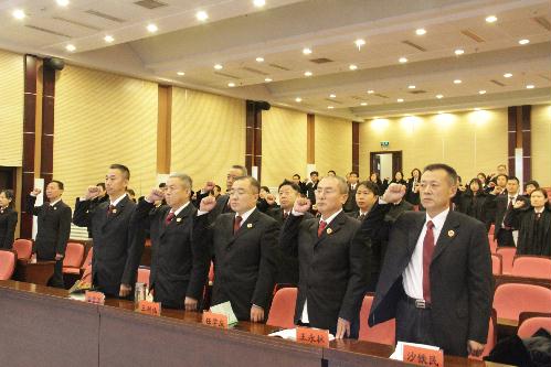 “我志愿加入中国共产党,拥护党的纲领,遵守党的章程……”在认真听取了抚顺市检察院组织的十九大精神专题报告会后,市院报告厅里, 200余名检察干警身着制服,佩戴党徽,举起右拳,庄严地重温入党誓词。