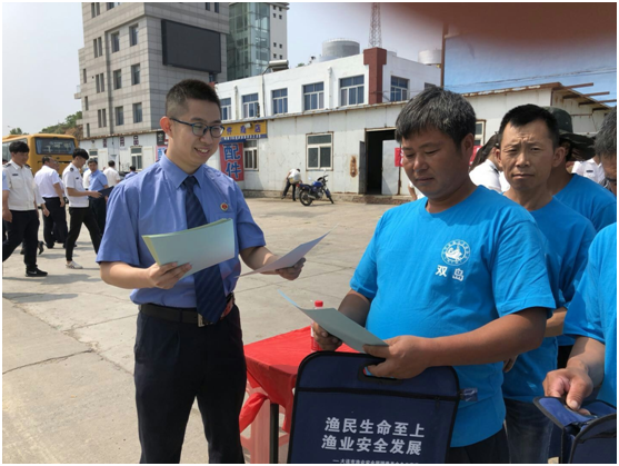 为进一步落实大连市公益诉讼推进会的精神,提升社会各界尤其是广大渔民对公益诉讼的知晓度和参与度,海事检察处于6月12日与相关部门再次联手,在旅顺董砣子中心渔港码头合力举办“2018年大连市海洋渔业安全月咨询日”活动,积极开展以海洋生态环境保护为主题的公益诉讼宣传活动。