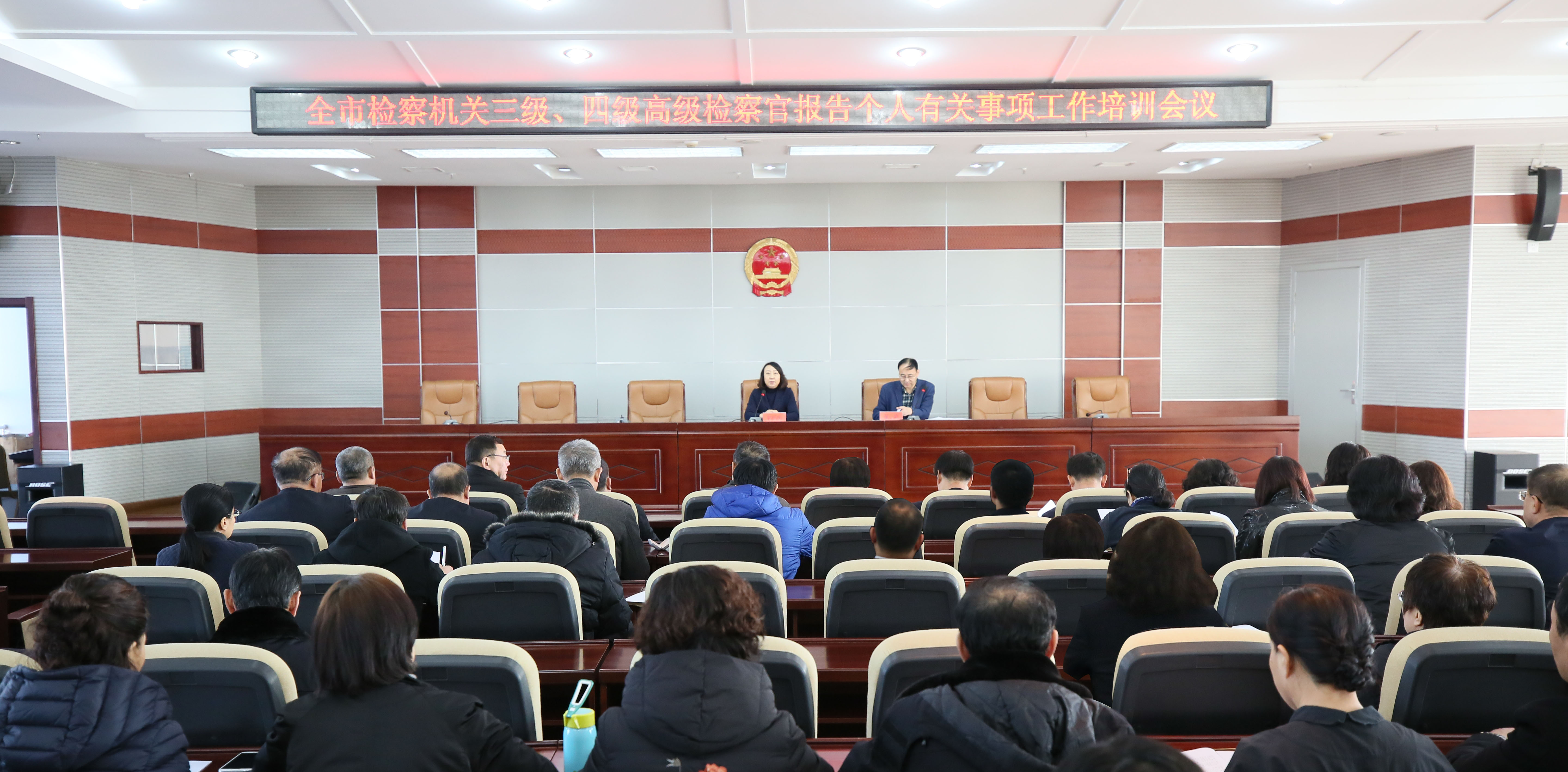 全市三级、四级高级检察官参加培训会议。