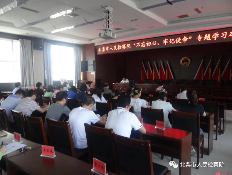 近日,北票市检察院按照北票市委、市政府统一部署,结合我院实际,召开“不忘初心、牢记使命”专题学习研讨会议。会上,政治处主任杨兆锋带领全体党员同志对“不忘初心牢记使命”主题教育从六个方面进行了学习。要求该院全体同志要充分认识开展主题教育的重大意义,主题教育活动是党中央统揽“四个伟大”作出的重大部署,对统筹推进“五位一体”总体布局、协调推进“四个全面”战略布局,决胜全面建成小康社会、夺取新时代中国特色社会主义伟大胜利、实现中华民族伟大复兴的中国梦,具有重大而深远的意义。