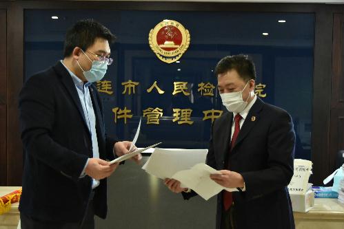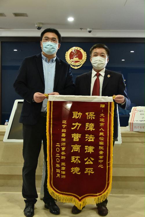 近日,辽宁某律师事务所的王律师来到大连市院案管大厅,向在疫情防控期间帮助他解决跨省阅卷难题的检察官送上锦旗和感谢信。