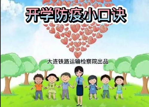 随着大连市中小学全面复课复学,为进一步增强学生的健康意识,提高学生在校的自我防控能力,大连铁检院未检检察干警为学生录制了简洁易记的在校防疫小口诀并在 “两微一端”平台推送,帮助学生们科学防疫、轻松防疫。