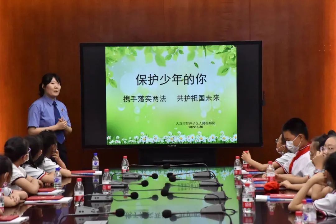 近日,大连市甘井子区检察院、法院联合举行“携手落实‘两法’共护祖国未来”检察开放日暨司法职业启蒙活动,锦华小学部分师生、职业律师代表等受邀参加活动。