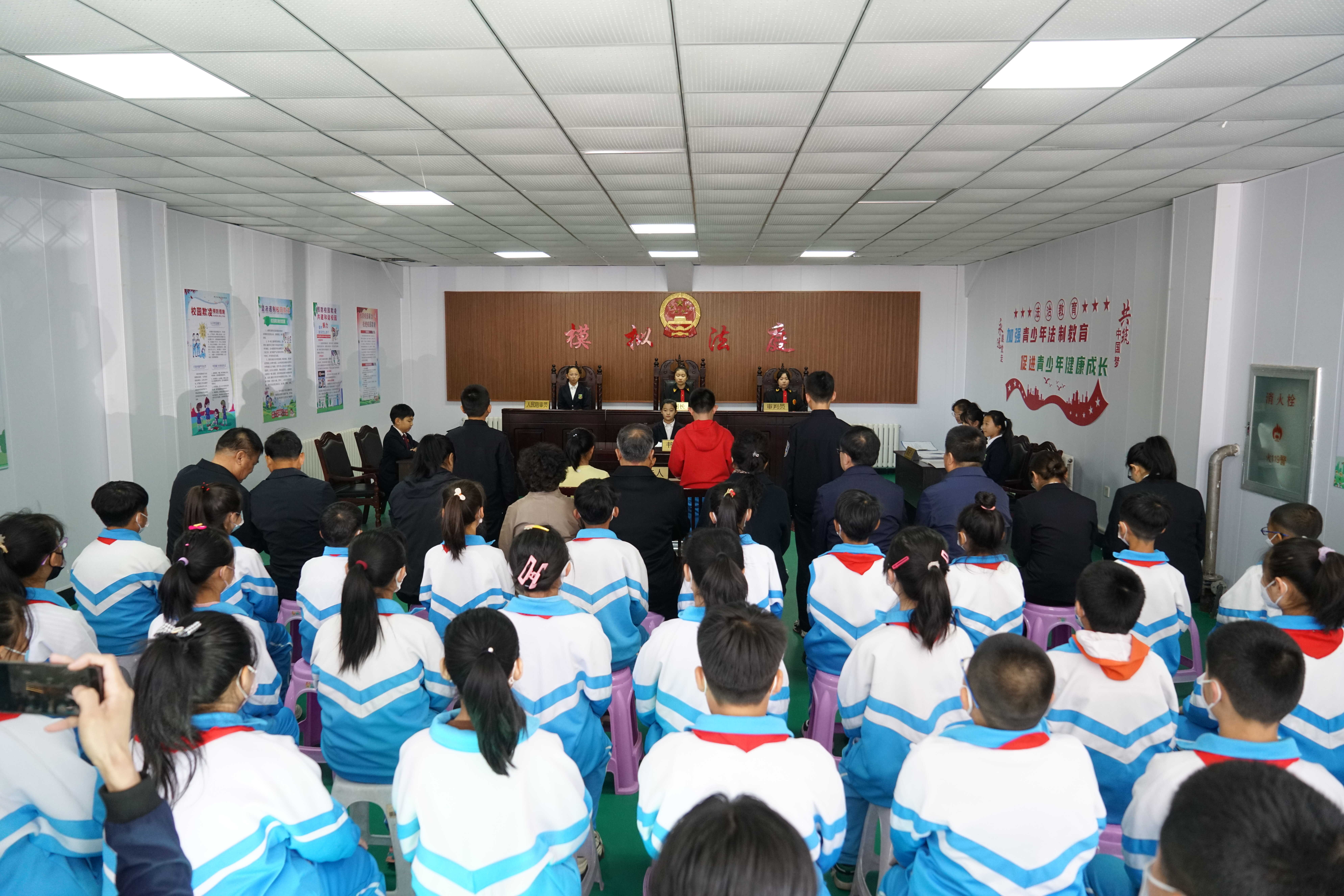 “现在宣布开庭!”日前,以一起未成年人涉嫌故意伤害的校园欺凌案件为原型的模拟法庭在盘锦市大洼区实验小学拉开帷幕。