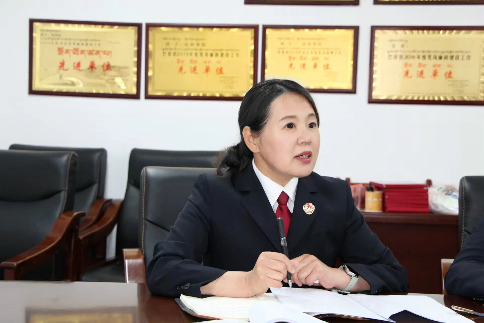 整理援藏档案,翻出刚来时拍的照片:斑驳的办公楼,井边的水桶,泥泞的院路。再看看现在,玻璃幕墙反射着雪山的光,院子里的格桑花开得正艳,年轻的检察官们用着崭新的设备,讨论着最新的公益诉讼案例。四年时间,像一场缓慢的修行,我们不仅改善了办公生活条件,更让法律的根系在这片土地上扎得更深。洛达最近在学无人机操作,他说以后要去更远的牧区取证,以前骑马要走三天的路,现在无人机两小时就能查完,曲珍则在整理藏汉双语的公益诉讼手册,她说要让每个牧民都知道,法律会保护他们的草原和牛羊。看着他们,我突然明白,援藏从来不是单方面的付出,我们带来了资金和技术,这片土地却给了我们更珍贵的礼物——对坚守的理解,对奉献的诠释,对“公益”二字最质朴的注释。站在海拔四千米的地方,望着远处连绵的雪山,我知道,无论将来身在何处,这段在高原守护公益的岁月,都会像胸前的检徽一样,永远闪耀在记忆深处。因为这里的每一滴水、每一寸草、每一块石头,都记得我们如何用法律的温度,焐热了这片土地的清晨与黄昏。