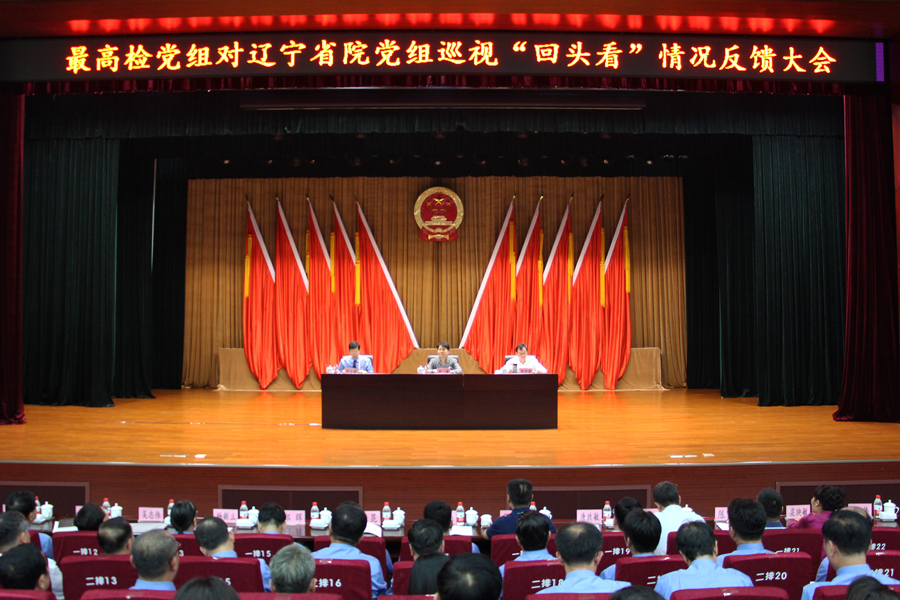 召开最高检党组第二巡视组向辽宁省院党组反馈巡视“回头看”情况大会。最高检党组第二巡视组组长乔汉荣反馈巡视“回头看”情况。最高检检察委员会专职委员兼反贪污贿赂总局局长卢希受最高检党组委派,围绕巡视整改工作提出要求。辽宁省院党组书记、检察长于天敏代表省院党组作表态发言。