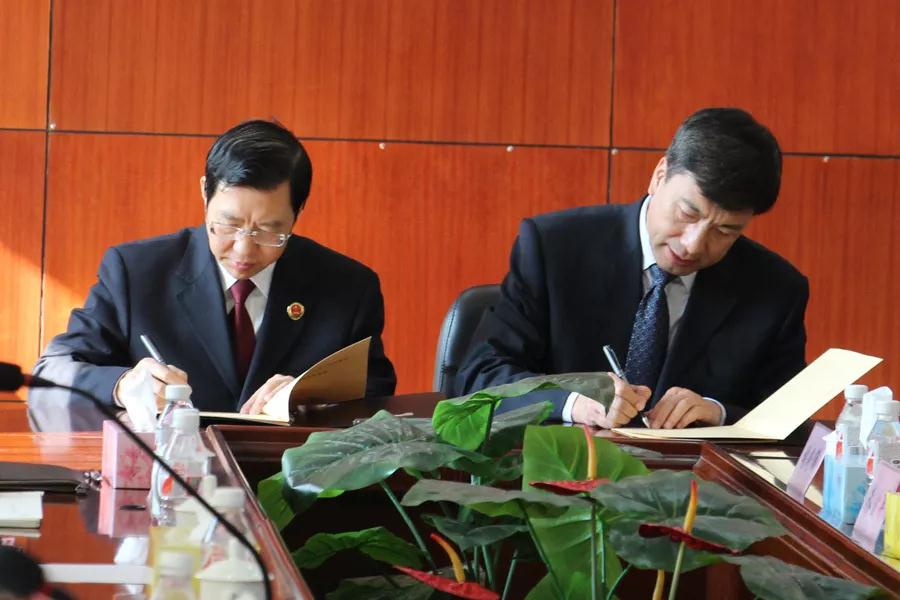 11月2日上午,辽宁王中王论坛 与沈阳师范大学检校共建合作座谈会暨签约仪式在沈阳师范大学举行。王中王论坛 党组书记、检察长于天敏,院党组成员、政治部主任许世赢及相关业务处室负责人,沈阳师范大学党委书记贾玉明,党委副书记、校长郝德永及校方师生代表参加了会议。于天敏检察长与郝德永校长分别代表检校双方在检校共建合作协议书上签字。