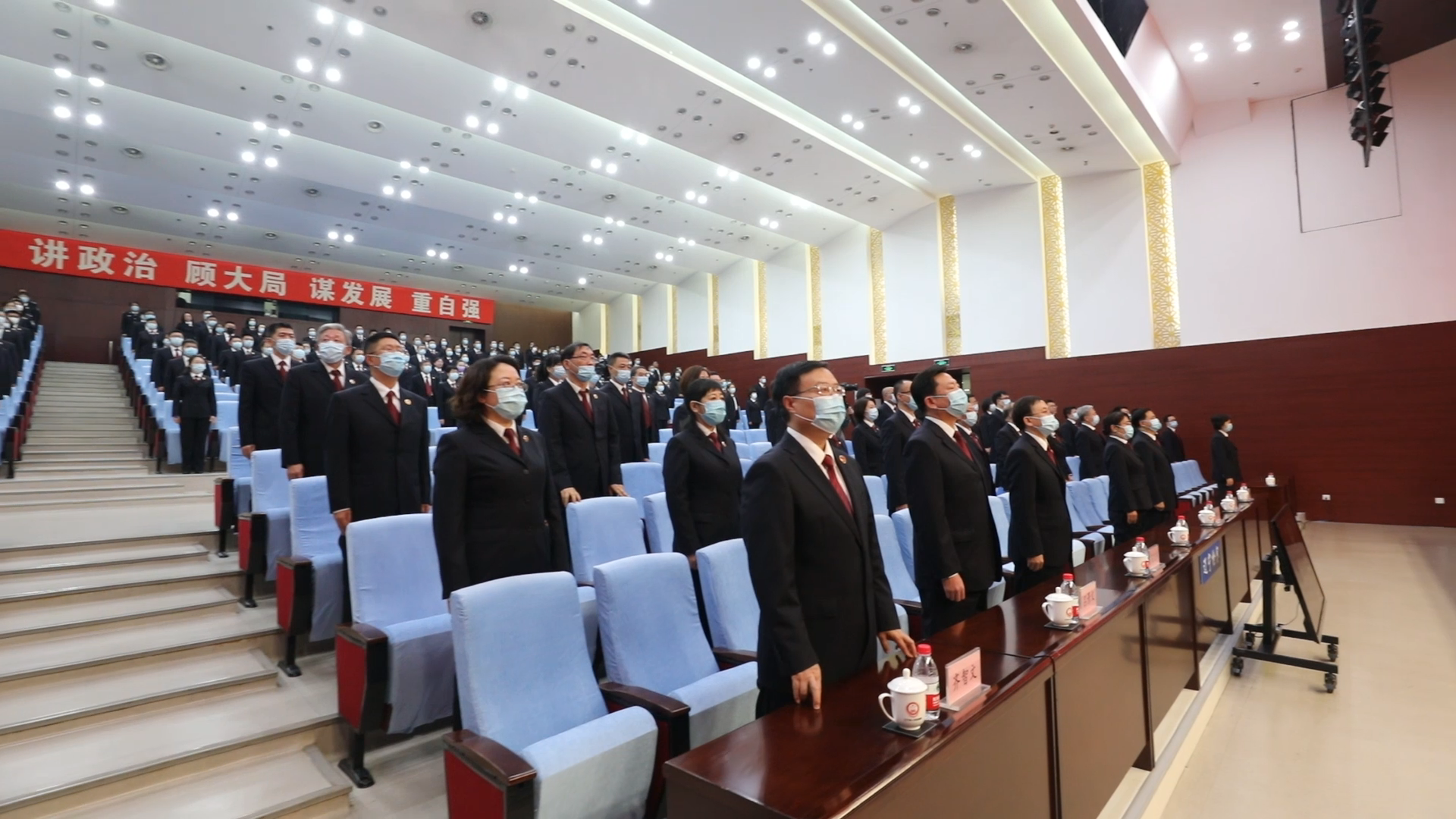 宣誓仪式在奏唱中华人民共和国国歌中拉开序幕。