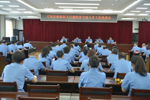 辽阳市检察院召开全市检察机关扫黑除恶专项斗争推进会,总结工作成效,分析存在问题,进一步严明政治纪律、政治规矩,强化责任落实,推动扫黑除恶专项斗争不断引向深入。会议传达了省市扫黑除恶领导小组工作会议精神,通报了全市检察机关扫黑除恶工作进展情况,并对扫黑除恶专项斗争下一阶段工作进行安排部署。
